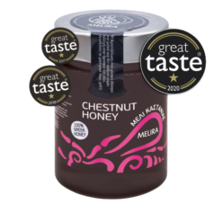 To μέλι πεύκου είναι παχύρευστο με κεχριμπαρένιο χρώμα και ουδέτερη γεύση. Συλλέγεται στα πευκοδάση της Χαλκιδικής. Ο αρμονικός συνδυασμός θάλασσας και πευκοδάσους μεταφέρει στο μέλι την αύρα και τα αρώματα του Αιγαίου πελάγους.